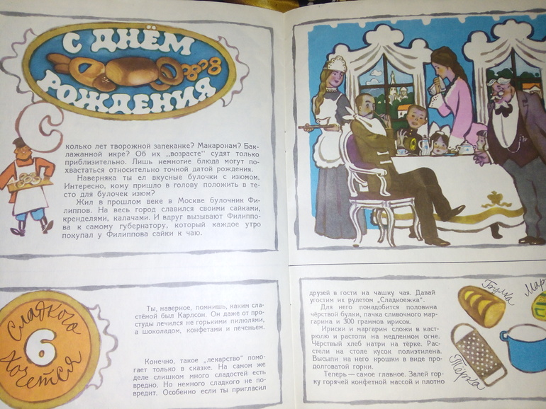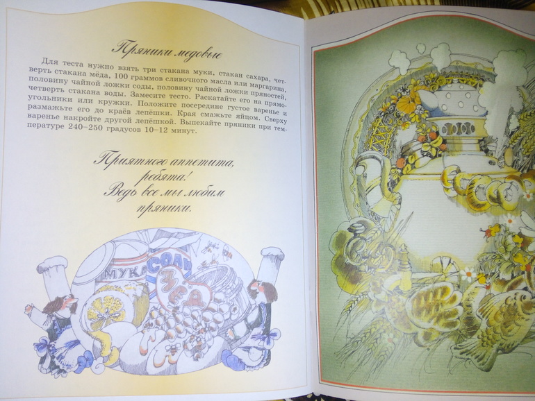 Отличная книжка - тонкая, а столько информации о пряниках, да еще и рецепты есть. Иллюстрации Цикоты, я помню его стиль с детства, озорной. Сейчас в продаже с другими рисунками.Недавно купила тонкую буку - Яхнин "Вкусные картинки", художник Дедунин.