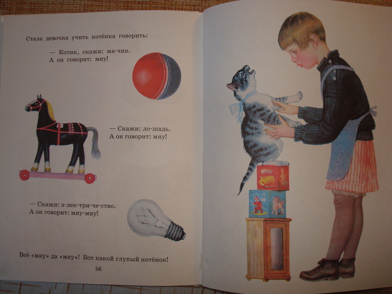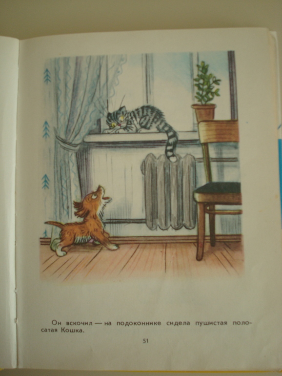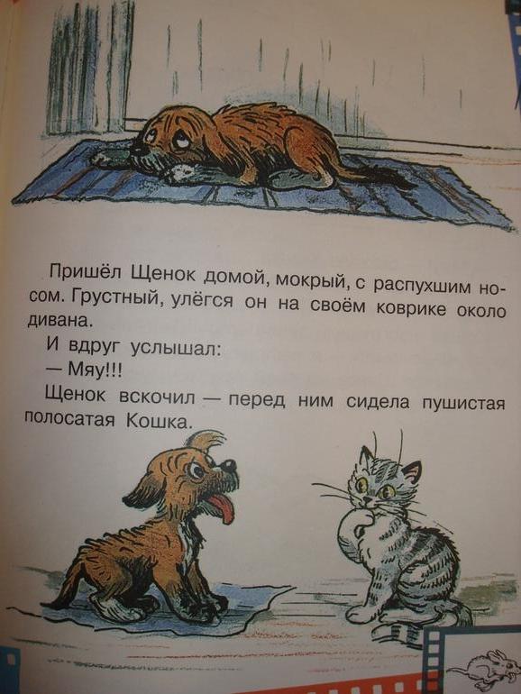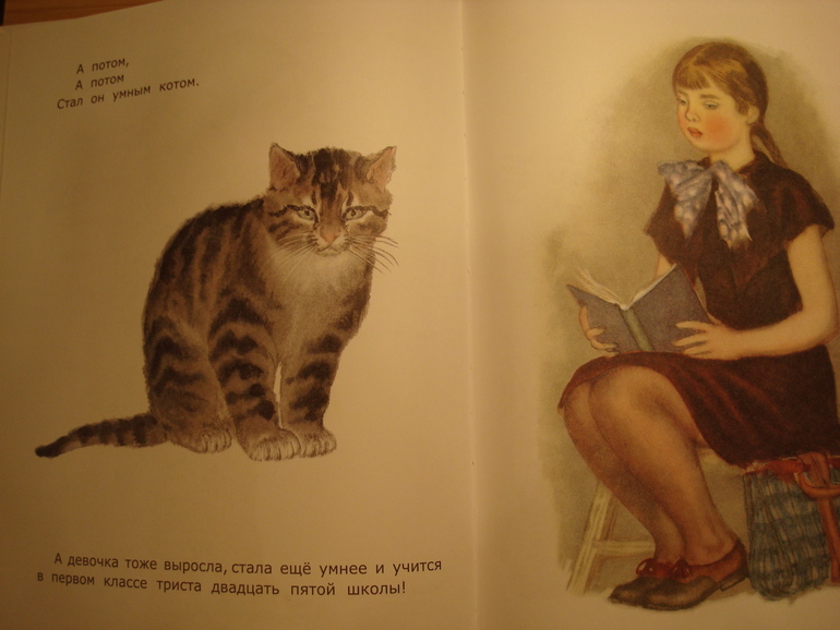 У В.Сутеева несколько случаев, когда в зависимости от иллюстраций и истории немного отличаются. Например, тут кошка на окошке: