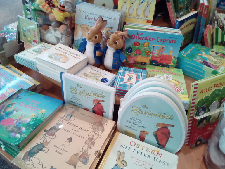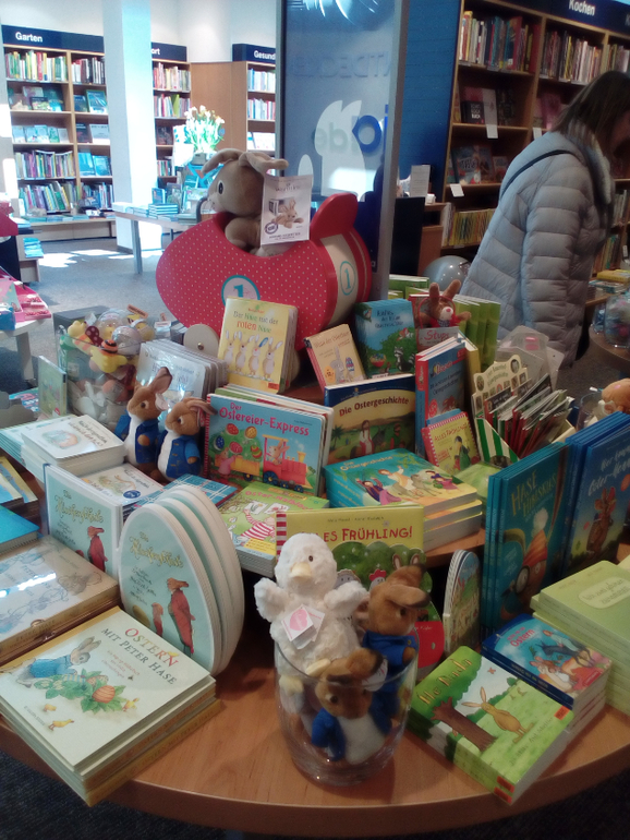 В детском отделе всегда есть актуальная "экспозиция", сейчас, это конечно пасхальные книги, аксессуары, мелочи и т.д