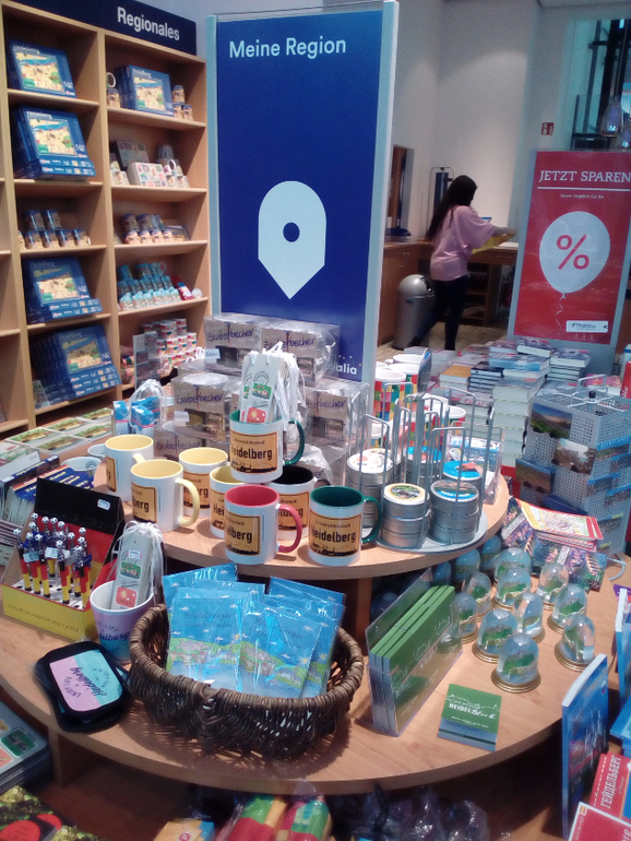 Гейдельберг-город туристов, магазин располагается в центре старого города, по туристическому маршруту. Поэтому зайдя в магазин, покупатель сразу попадает в мир сувениров с городской тематикой, открыток, брелков, магнитов.