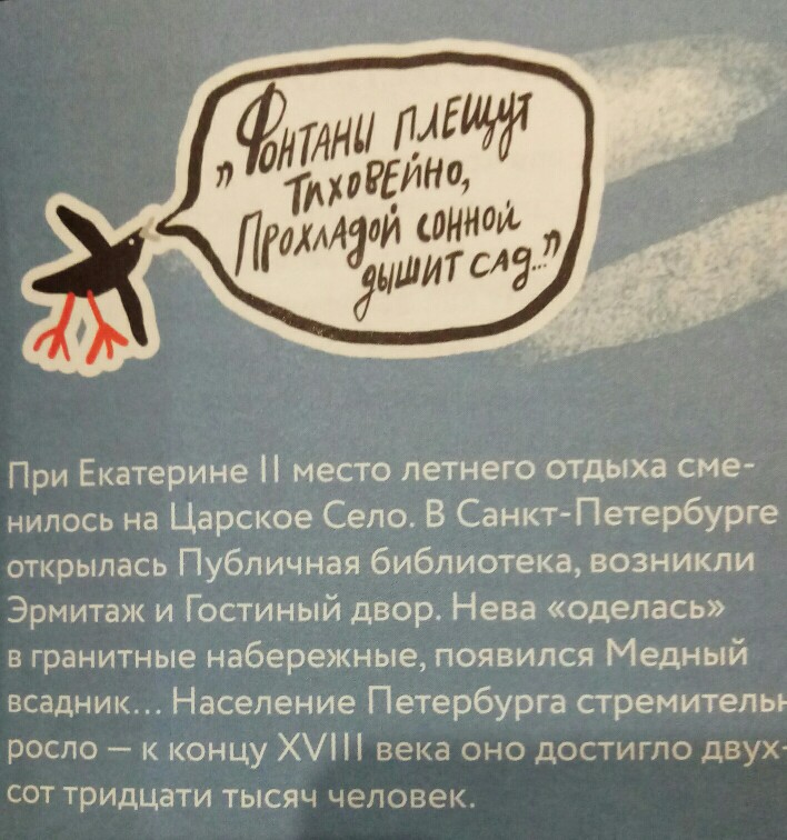 Он не призван вызывать восхищения рисунками и фотографиями, его прелесть в том, чтобы выделить самые интересные для посещения места в Питере, легко найти их и затем восхищаться ими с натуры! Вычитая краткие, занимательные факты прямо на месте!