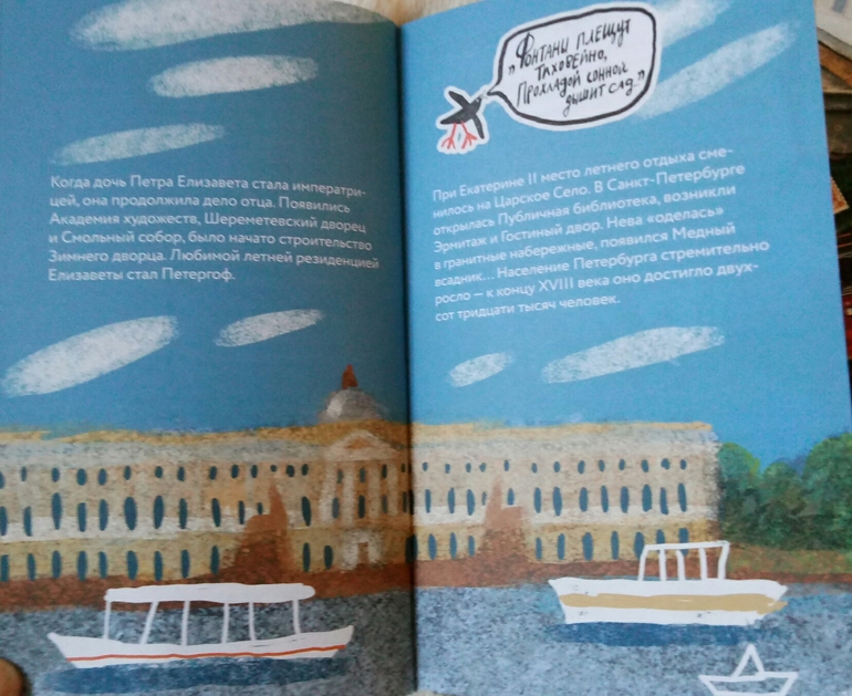 Конечно, фотографии Питера красивее, и вернее передают облик достопримечательностей, но согласитесь, этот тот случай, когда лучше один раз увидеть вживую) А если Вы хотите в книге полюбоваться видами Петербурга, этот путеводитель, скорей все не подойдет, тут рисунки более схематичные.. зато насколько поразит реальная красота)