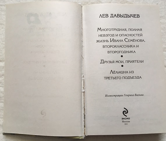 Решила почитать Жизнь и страдания Ивана Семенова, в книге несколько произведений Л. Давыдычева, но прочитался пока только Семенов. Девчонки охотно слушали, местами мелкая хохотала в голос. Есть конечно непонятные для меня моменты - например, золотой зуб у девочки. Непонятно, для чего это нужно было прописывать в книге? Но в целом, конечно, история понравилась. Очень хочу остальные истории с девочками тоже почитать.)