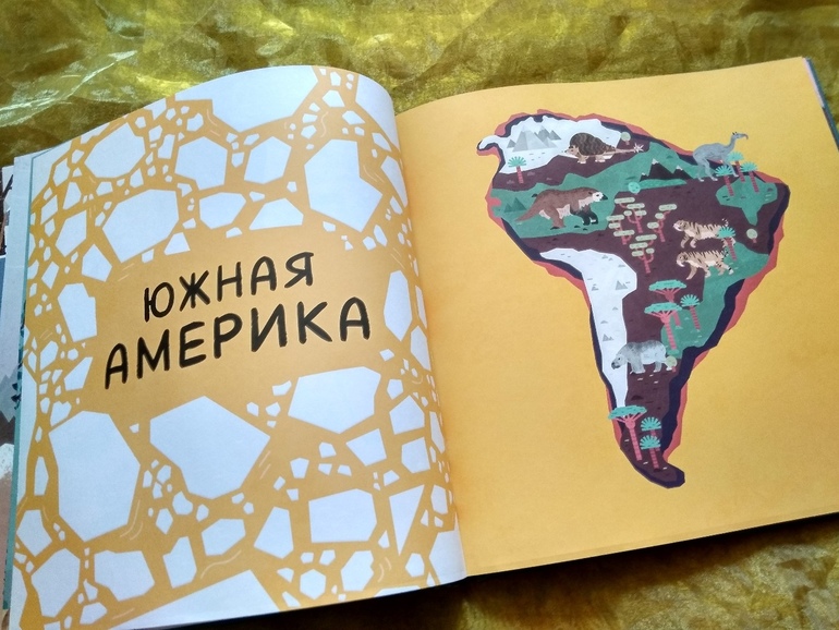 Книга состоит из нескольких разделов по количеству континентов, в каждом показаны самые крупные звери материка. Каждый разворот посвящен одному животному. Если сведений о нем гораздо больше, то у страниц появляются дополнительные отвороты, больше всего впечатляющие своим размахом. Именно они являются отличительной особенностью книги, на которую можно ловить души и сердца юных слушателей и читателей. Она хороша своей наглядностью.