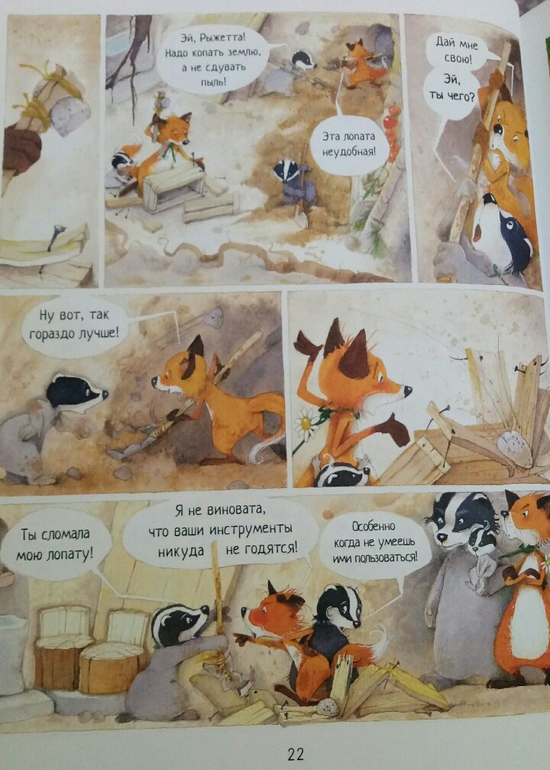 Ребенок мой очень книгу полюбил, и часто просит про лис и барсуков. Любимый его момент, как Рыжетта ломает лопату