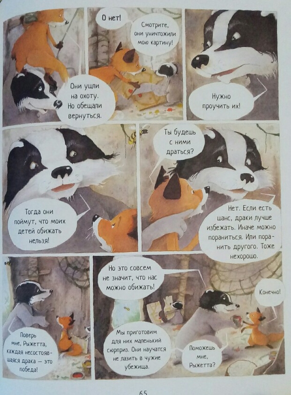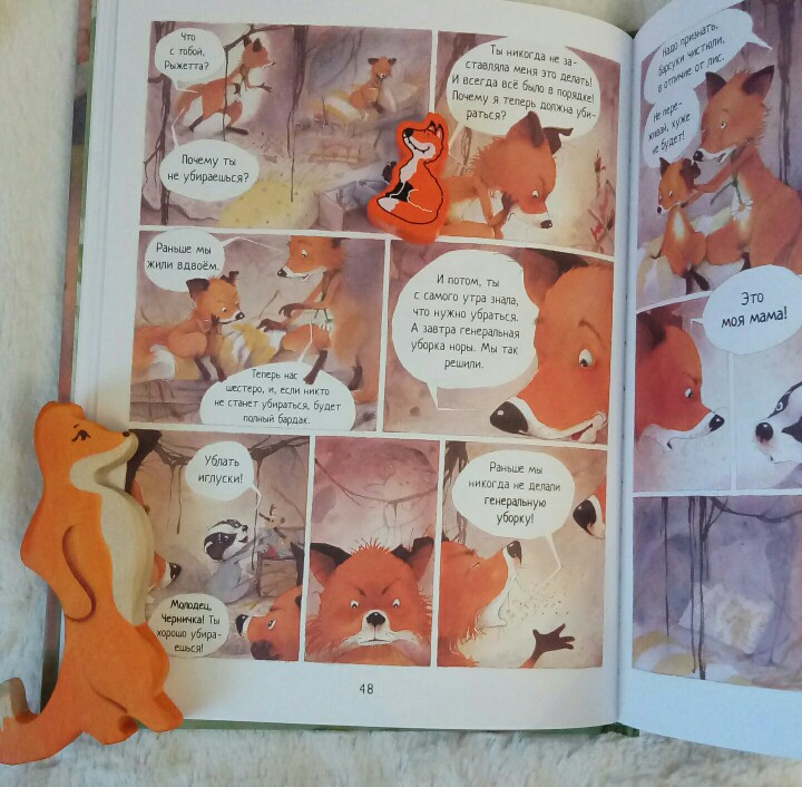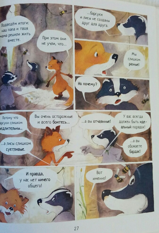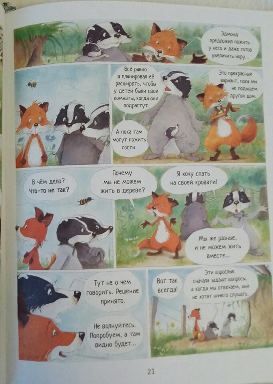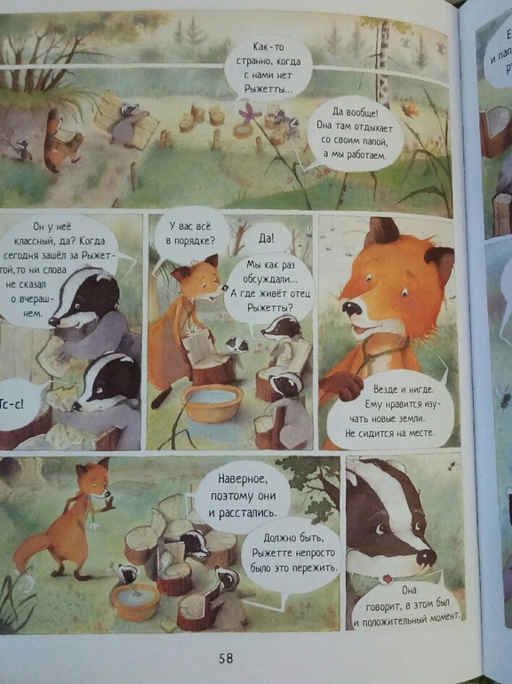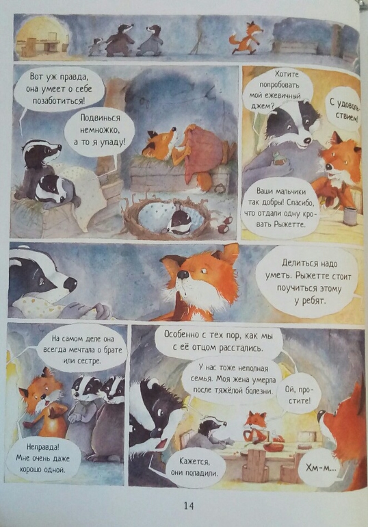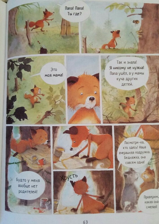 Меня теперь лисы всегда заставляют внутрь заглянуть) я еще комиксы не очень люблю за большое количество бессвязных фраз, читать вслух тяжело, как обрубки) а тут нормально)) вот точно, для подростков намного чаще встречается эта тема! А ведь малыши не меньше переживают..