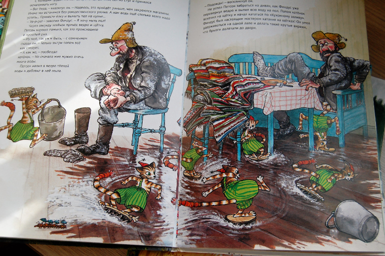 Еще одна давняя знакомая корова :))) Эта серия чуть менее любима, чем про Лизелотту, но тоже очень нравится, потому что рисунки Нурдквиста. Да, и глянцевая бумага нужна для таких рисунков, на офсете блекло смотрятся.