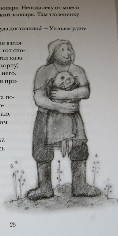 Волшебная история спасения тюлененка. Очень добрая и светлая. (Не читайте только детям послесловие. В основе книги реальная история спасения тюлененка, но она не такая счастливая.) Книга нам понравилась. С удовольствием слушал и Коля. Рисунки такие же добрые и трогательные, как сама книга.