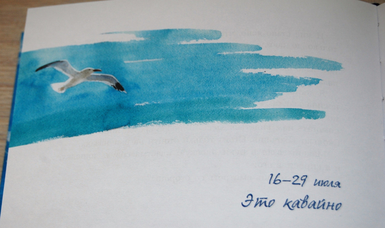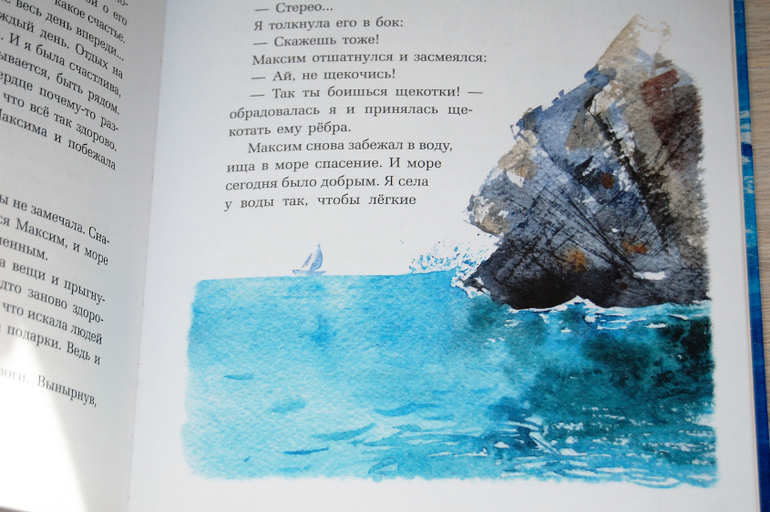 Рисунки хороши здесь. Опять Ольга Фадеева. Брызги акварели очень хорошо передают дух моря, кажется еще чуть-чуть и запахнет морем. По книге же, ну вот как-то я не впечатлилась. Рассказы между собой никак не связаны. Только то, что все это происходит в Крыму и передан дух этот приезжающих-отдыхающих-отъезжающих. И даже эти не связанные между собой рассказы показывают пестроту картинки. Я пыталась представить, для кого эта книга. Ну понятно, что не для моих детей, здесь присутствует тема влюбленности, первого чувства. Скорее она для подростков. Я пыталась вспомнить себя в этом возрасте и представить, что мне попалась эта книга в руки. И.. либо это было давно, и я забыла.. либо как-то я устарела. Ну вот не нравится мне тема обнимания между девочками и мальчиками в 12-14 лет. Я понимаю, что первая влюбленность, дружба между девочкой и мальчиком, но я против ранних отношений. А эта книга (может быть, мне это только показалось) она не отрицает этих отношений, даже немного подталкивает. Потому что это современно, модно. Вот я не хочу, чтоб моего ребенка еще из книг толкали к модному, поэтому я бы не стала своему ребенку предлагать эту книгу. Вот "Два капитана" Каверина да, а эту книгу нет.