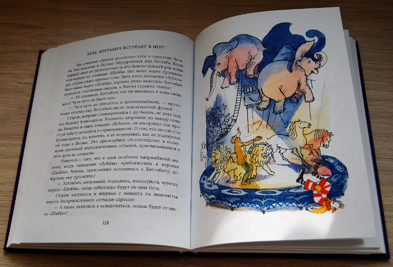Так вот. Эта книга опять из таких. Долго отказывалась читать, но все же согласилась, и потом почти со слезами просила на ночь читать еще и еще. Но мама - она ж не железная. Иногда включаю аудиоверсии. Так мы, например, регулярно переслушиваем "Денискины рассказы". Да много всего на самом деле. Но тут впервые столкнулась с разными версиями. Аудиокнига отличается от нашей книги целыми главами. Некоторых глав в аудиокниге просто нет, другие смысл остался, но совсем другими словами. Или как в главе про фокусника и Хоттабыча, у нас - "Старик Хоттабыч и Мей Ланьчжи", а в аудиоверсии - "Старик Хоттабыч и Сидорелли". Главу про летающие дома так и не нашла. В чем дело, не знаю. Понимаю, когда разные переводы, но тут то... Посмотрели фильм, очередной раз убедились, что в книге все интереснее, и многограннее. Хотя фильм тоже неплох. "Мама, а как делали эти спецэффекты, компьютеров же тогда еще не было". Я немного напрягалась, когда читала витиеватые речи Хоттабыча, особенно в начале книги, думаю, сейчас отпугнут эти речи от слушания, скажет "скучно". Но нет. Младший тоже слушал. Он у нас слушает все тоже самое. Даже комментирует по делу :))