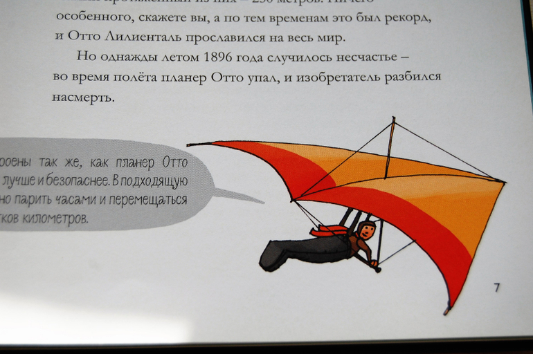 Интересная книга. Еще одно хорошее издательство. У нас книг этого издательства нет в домашней библиотеке. Бумага на высоте, качество печати отменное. Авторские рисунки познавательны и интересны. Книга не очень объемная, всего 45 страниц, мне показалось, что для продвинутых читателей. Ну т.е. для тех, кто интересуется всерьез самолетами. Хотя с удовольствием послушали и поразглядывали. Рекомендую однозначно для детей от 7 лет. Но не рекомендую покупать ее, если вы не фанат самолетов, так как цена высоковата для такой небольшой книги. Жаль, нет ничего про российскую-советскую авиацию. Обидно.