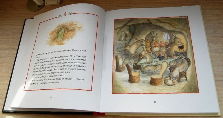 Чудесная книга, оформление.. Книгу очень приятно держать в руках: увеличенный формат, рисунки замечательные, бумага.. Ее отлично подарить. Потому что цена, конечно, как всегда, на что-то хорошее... Просто самому ее покупать, ради одной истории, вроде столько денег жалко, а в подарок получить, самое оно :)) История про кроликов, как они находят в лесу странную табличку и все вместе решают, что к ним придет Гном на рождество. Готовятся к рождеству.. А в это время Гном действительно живет недалеко от них и даже не догадывается об этом. Но как в сказке, они встречаются, и получается отличный праздник!
