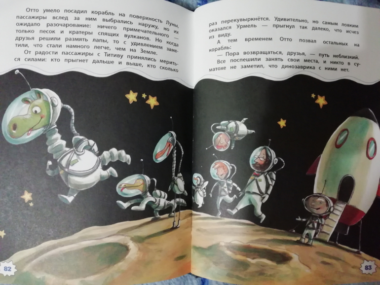 Динозаврик Урмель - специально для самостоятельного чтения покупала. Забавные истории про жизнь зверей на острове) Развлекательная книжечка без особой смысловой нагрузки. В книге несколько историй: про клад, про полет на луну с инопланетянином,про то, как Урмель становится рыцарем. Показалось, что шрифт мелковат(