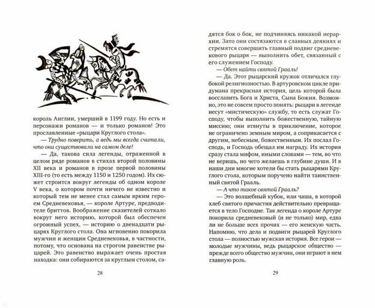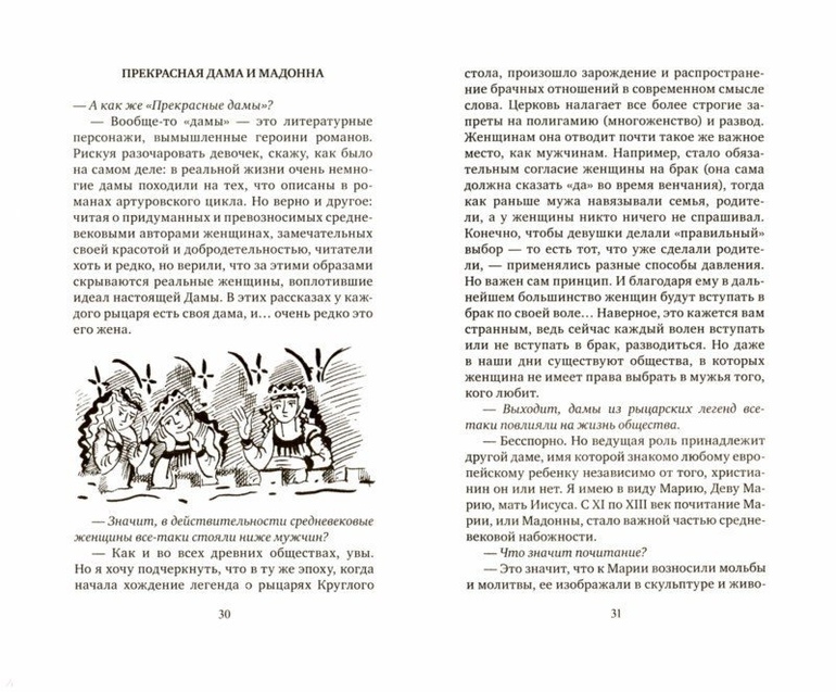 В живой, ненавязчивой, увлекательной манере он рассказывает о бесстрашных рыцарях и прекрасных дамах, которым они служили, о турнирах, доспехах, устройстве и назначении замков, о соборах и важности религии для людей того времени, о сословиях средневекового общества, о королях, святых и феях, первых университетах, ярмарках, музыке, праздниках, народных поверьях и многом другом.