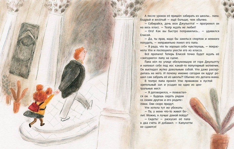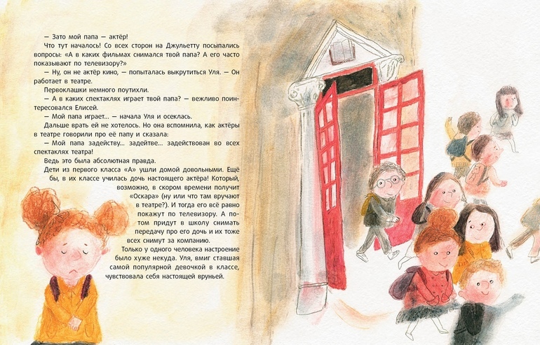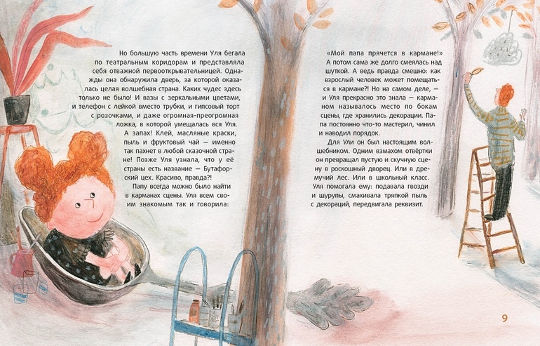 Девочка Уля очень любит своего папу. Ведь он самый добрый и весёлый на свете! А ещё у папы очень необычная профессия: рабочий сцены в детском театре. Все актёры его уважают, и без его участия не проходит ни одной репетиции. Но в школе Уля стесняется рассказать одноклассникам, кем работает её папа. Особенно соседу по парте. И тогда девочка выдумывает, что её папа...