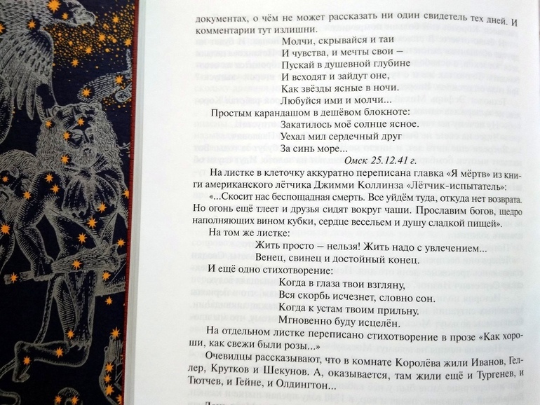 Читаю книги с любого места )) Именно поэтому мне было тяжко читать электронный вариант с читалки - мне все время надо листать книгу туда-сюда. Вспомнить, вернуться, уточнить, снова рассмотреть фотографию. Это не та биографическая проза, когда автор пишет как бы изнутри, из головы героя, пытаясь видеть мир его глазами. Нет, это исчерпывающий портрет героя глазами сторонних наблюдателей. Конечно, Голованов пытается понять и объяснить мотивы и цели поступков Королева, восстановить ход его мыслей, но именно раскладывая все, что удалось узнать, ничего не упуская и не подтасовывая. Нравится объективность автора - он не идеализирует своего героя, не замалчивает недостатки.