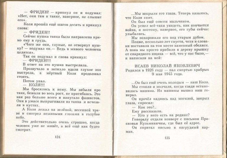 Погиб наш Коля. Прямо 9 мая 1945 года. Пошел он, не скрываясь, прямо к фашистскому танку, чтобы сказать тем, кто в нем сидит, что всё, война кончилась, стрелять больше не надо!..