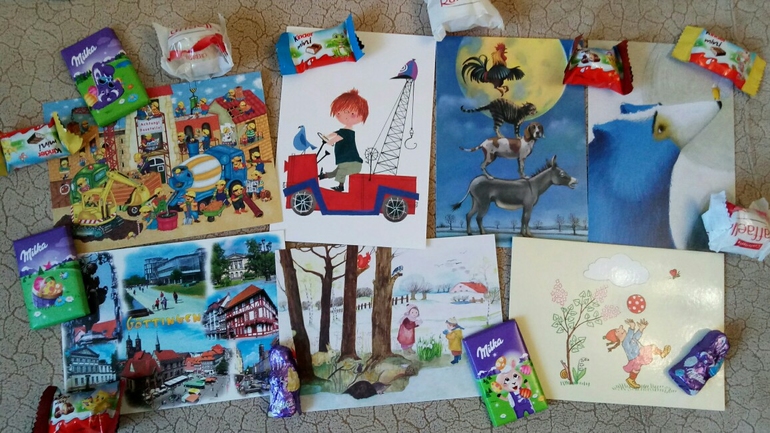 Я от хабы тоже балдею)) обожаю их игры) Ой, Лен, открытки, которые девочки присылают,я не за что ни кому не отдам) Для посткроссинга надо купить, и желательно в двойном размере) а если еще про марки вспомнить) но я соберусь когда нибудь)