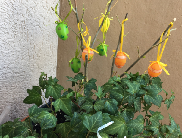 А кроме книг, вкусняшек и открытки, ещё Лена нас обеспечила пасхальным декором. Я уже несколько лет поглядываю на эти штучки. Нравятся мне пасхальные цветные деревья. Теперь и наше балконное деревце пестрит!!! Лена, лови от нас воздушный поцелуй. Спасибо огромное за отличное весеннее настроение!