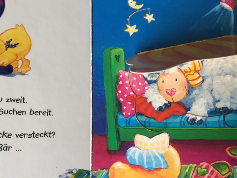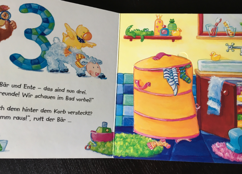 Почти все книги знакомы участникам сообщества, поэтому сейчас покажу вам только несколько разворотов из книги "Kuckuck, wo bist du?". Классная книга!!! Я ещё Паше не предлагала книги с клапанами. Но вот эту книгу мы с удовольствием уже читаем. Клапаны открываем/закрываем. Играем в "ку-ку". Книга попала к нам как раз вовремя. А ещё у нас сейчас в фаворитах мишки и лягушки, хотя и уточку с овечкой Паша без внимания не оставляет.