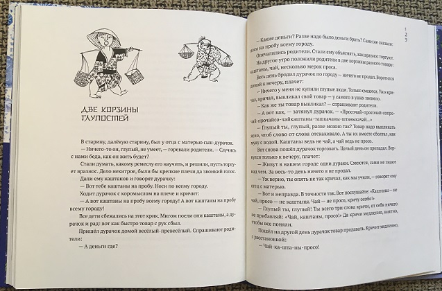 Но младшая углядела, что я читаю эту книгу, и попросила немного тоже почитать.)) Сказки в основном все интересные.)) Есть смешные, ухохотались над сказкой Две корзины глупостей.
