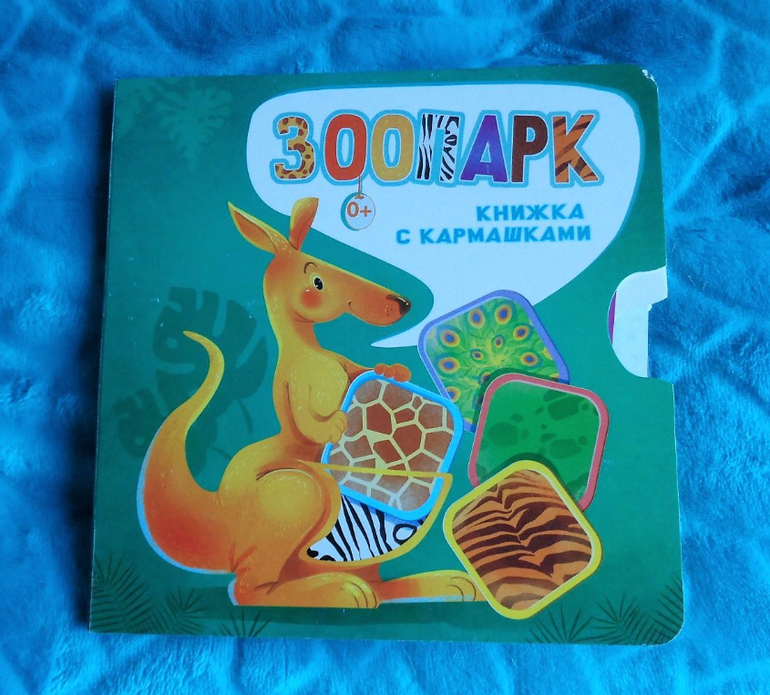 Самым интересным в этой книжке, конечно, являются кармашки. Туда вставлен лист, совпадающий по окрасу с каким-нибудь животным. Листочки можно менять и просить ребенка вставить правильно.