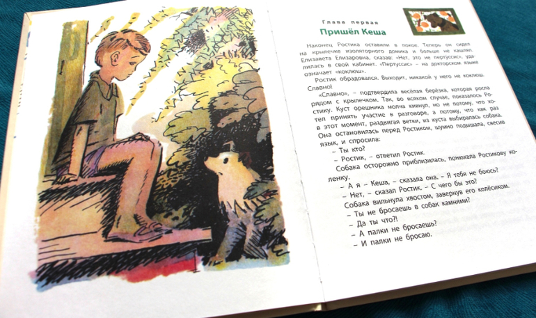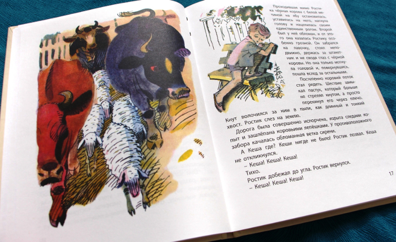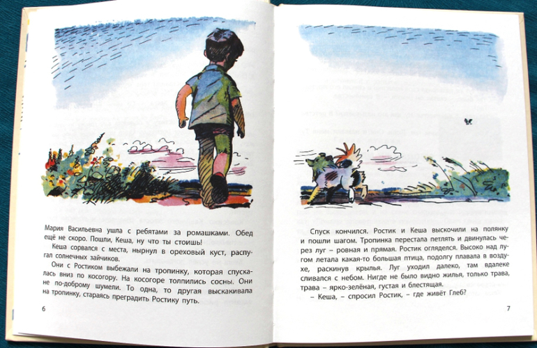 В книге шестилетний мальчуган оказывается в незнакомой деревне - и это читать совсем не страшно, потому что все ему помогут, никто не обидит. Мальчика зовут Ростик и он очень хочет помочь собаке найти хозяина. И мне уже сразу подумалось, что не очень-то Кешу там ждут, но наивная собака верит в хозяина, а Ростик верит в людей и сам стремится быть хорошим человеком.