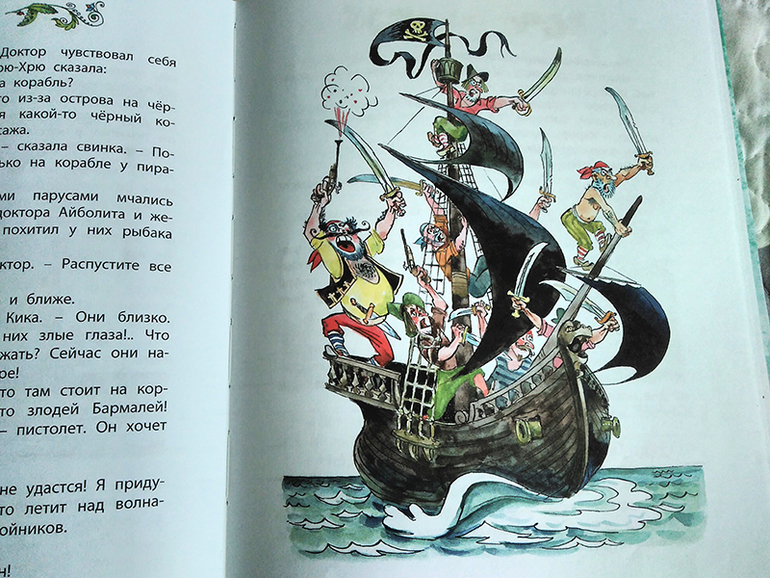 1) Айболит в прозе, перевод Чуковского. Издательство «Энас-Книга». Сказка написана по мотивам цикла произведений английского детского писателя Гью (Хью) Лофтинга (1886-1947) о докторе Дулиттле, ставшем прототипом Айболита. Эта шикарная книга про пиратов, приключения и чудо-юдо животным нужна просто всем дошкольникам. 4-5 лет самое то. И как странно, что большинство про это произведение не знают, не сразу понимают что я говорю не о стихах. Узнала о книге здесь в ДК. Закладывает основы про пиратов, поиска сокровищ, морские приключения и прочее. Читали зиму, всю весну читали, потом опять осенью. Постоянно вспоминаются герои или события. Давала книгу читать мальчику, вернули только после того как подряд несколько раз прочитали. Грозились купить в домашнюю библиотеку. Выбирала между илл Елисеева и Чижикова. Чижикова люблю, но Елисеев ближе и веселее к Чуковскому (мое мнение!! :-). Качество книги хорошее, столько раз читали, и страницы и корешок в порядке, нигде ничего не потерлось. В пару к сказке читался и сборник стихов, тоже с задорными илл Елисеева.