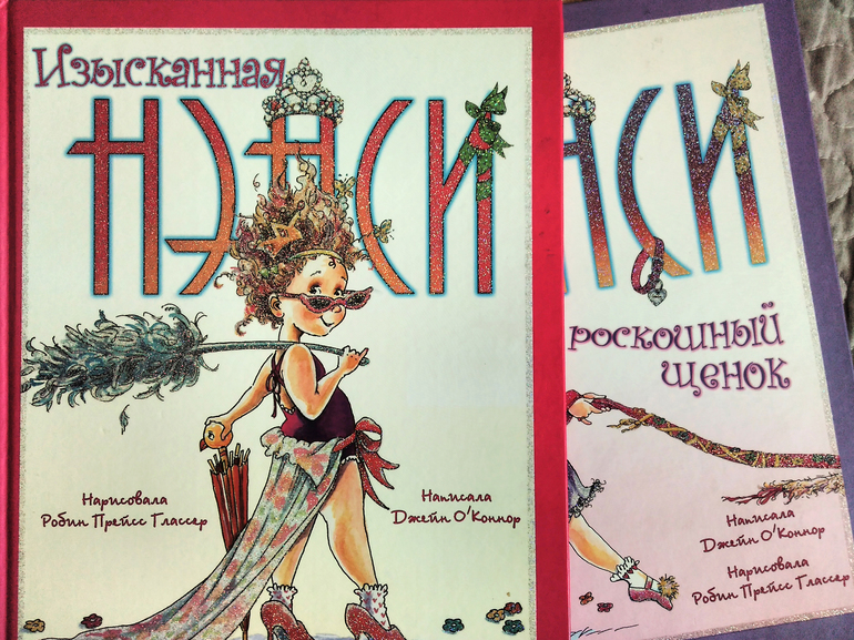 2) Нэнси, автор Джейн О`Коннор. Эту розовую жемчужину напечатали в издательстве «Розовый жираф». Любим нежно всей семьей это издательство за Дядю Амоса, Голодную гусеницу и Чернику для Саши. А теперь еще и за Нэнси. Слово «изысканность» в нашем доме теперь говорят по 100 раз на дню. Очень девчачья серия. Про розовое, рюшки, и прочие украшательство. Но книги также и об уважении в семье, и конечно о любви ) Очень мне нравится как семья сначала с воодушевлением стала брать уроки изысканности и одеваться в перья, а потом когда случился конфуз - поддержали изысканную малышку.