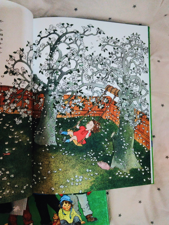 8) Мы все из Бюллербю и Дети с Горластой улицы. Астрид Линдгрен. Помню были посты про эти издания от Махаон, что текст толи сокращен, толи адаптирован для малышей, или не полностью. Именно поэтому я эти книги с потрясающими иллюстрациями Илоны Викланд и взяла на возраст 4-5 лет. Чудесный мир детства Бюллербю. Вычитала/выписала эти книги из прошлых топов. И как жаль, что мало книг с цветными иллюстрациями этой художницы. Я сама готова медитировать над ними и гонять на велике в Бюллербю.