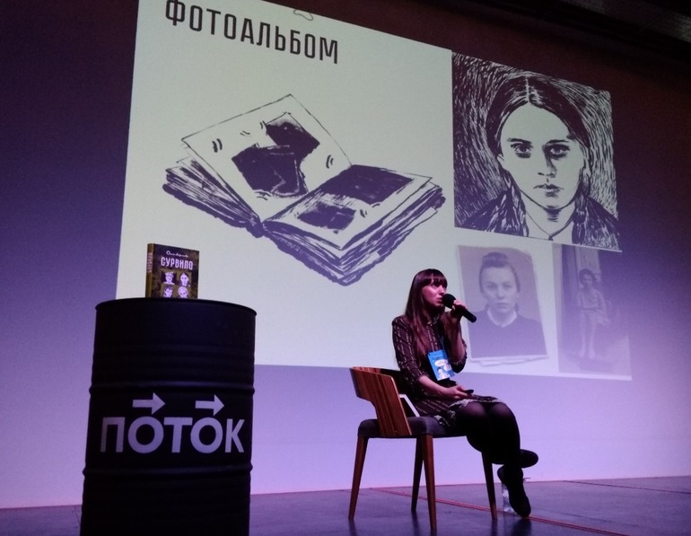Книга меня очень впечатлила! Развороты показанные на большом экране, действуют мощно, да еще, когда идут под рассказ о судьбе бабушки, о работе над книгой, о поисках, об идеях, сквозных мотивах...