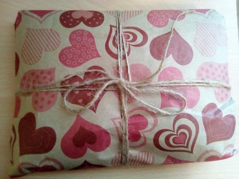 Сегодня, конечно, ещё не 1 мая, но настроение уже отдыхательно-праздничное. И настроение это у меня стало просто восхитительно-радостным, когда в почтовом ящике я обнаружила извещение о том, что на почте меня ожидает бандеролька из далекого Хабаровска. Я сразу же поспешила на почту - ведь сегодня короткий день, не была уверена, что успею. Но успела. И народу не было ни единого человека. Получив заветный пакетик, сразу взглянула на имя адресата - ну так и есть! Любочка- Любовь! Вот такой красивый сверток я достала из почтового пакета: весь в сердечках, сразу видно, что сюрприз сделан от чистого сердца и с любовью. А внутри...