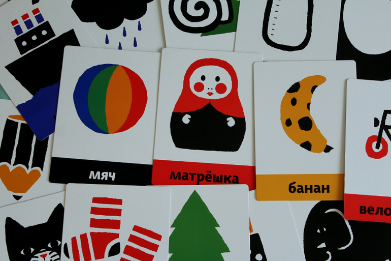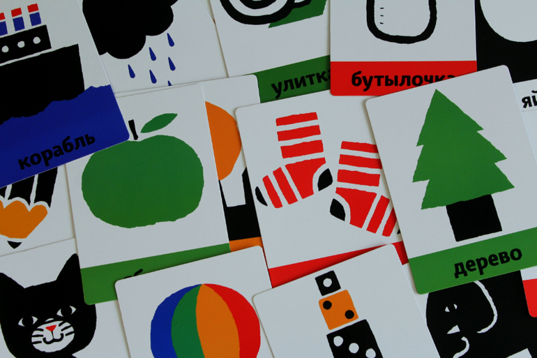 Самым первым "чтением" для малышей обычно становятся карточки. Сначала черно-белые, чуть позже карточки с рисунками раскрашенными в основные цвета: красный, зеленый, синий и желтый. Этот набор полностью соответствует всем требованиям. Карточки плотные, ламинированные, с закругленными углами и довольно большой размер (22 см.). Карточки есть и черно-белые и цветные.