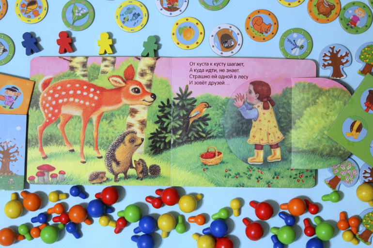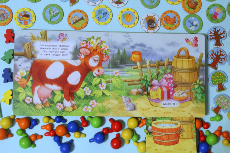 Издательство "Лабиринт" картона на книги тоже не жалеет.)) Очень толстые картонные страницы. В книге не клапаны, а задвижки. Прочитали стишок-вопрос, отодвинули створку и увидели ответ.)) Иллюстрации приятные. Ещё одна любимая книга, которую с удовольствием советую для самых маленьких. У нас старое издание, но насколько я понимаю, у нового рифленая обложка, а у нас гладкая, в этом вся разница.