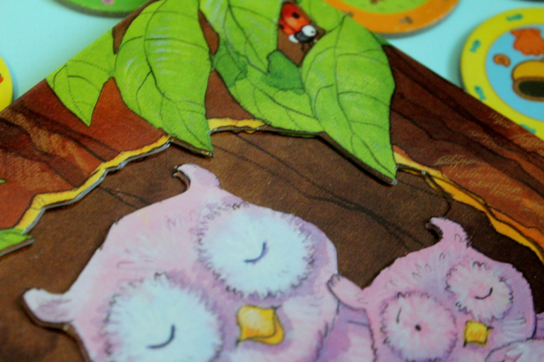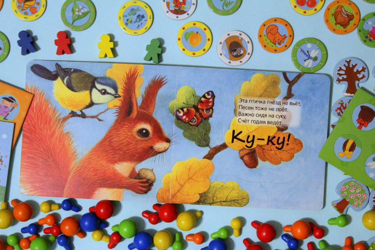 Еще одна почти уже старинка в нашей малышковой библиотеке. дата издания 2008 год. В продаже не сыскать. Привлекательно в ней то, что картинки объемные. Вырез дупла, выпуклый совёнок, в щелях дерева жучки сидят. Дочка любила эти переходы пальчиком трогать.)) Жаль, что не переиздают.