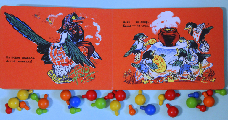 В 2012 году "Нигма" издала шикарную картонку с редким, развёрнутым вариантом потешки про сороку-белобоку. Иллюстрации Мавриной, я думаю, не нуждаются в представлении. Яркие, весёлые, подробные, они притягивают внимание малышей. Настя до сих пор время от времени читает эту книгу!)) Удивительно, но факт!))