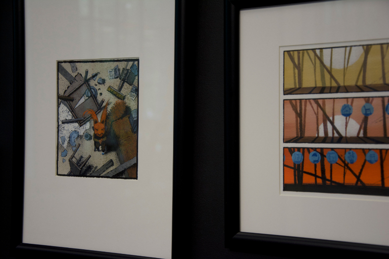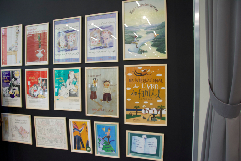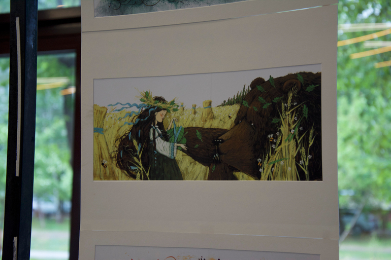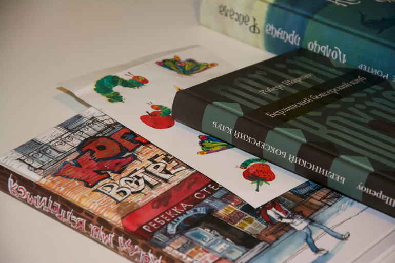 Интересно оформление зала, состоящего из картин-иллюстраций по книгам самых известных авторов!