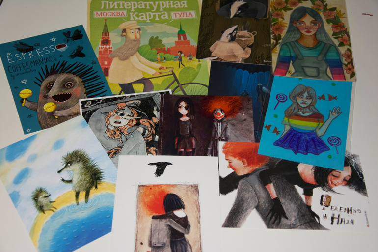 Две авторские рисованные открытки, одну купила Крис, а вторую она в подарок подружке)