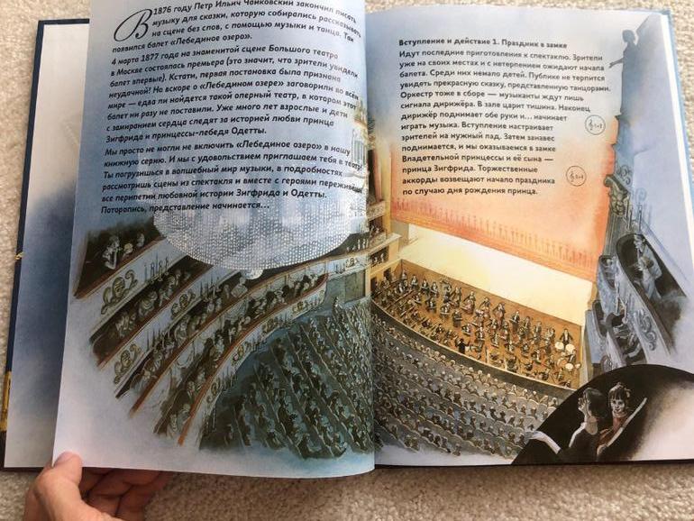 На мой взгляд книги с замечательными иллюстрациями,с адаптированной для детей шедевров мировой музыкальной классики, оформлением и печатью. Есть так же диск в комплекте и QR-код при помощи ктр, вы можете прослушать как рассказ из книги так и партии из балета,сюит и прочее. Прошу под кат