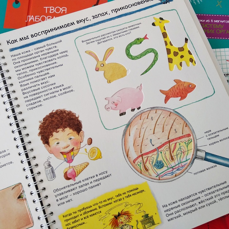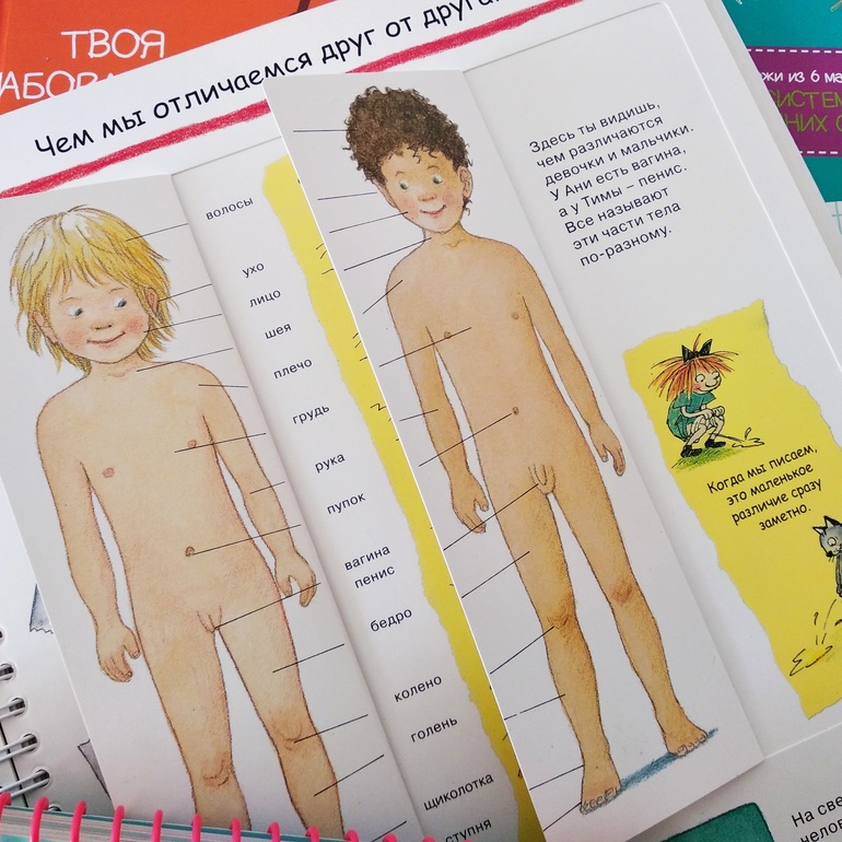 Во-вторых, строение человека здесь рассматривается на примере двух ребятишек - брата и сестры. Тут вам и разный цвет кожи/волос, и различие полов, и даже отпечатки пальцев.