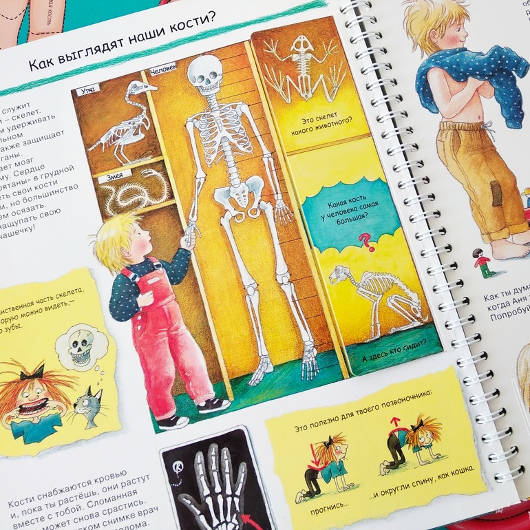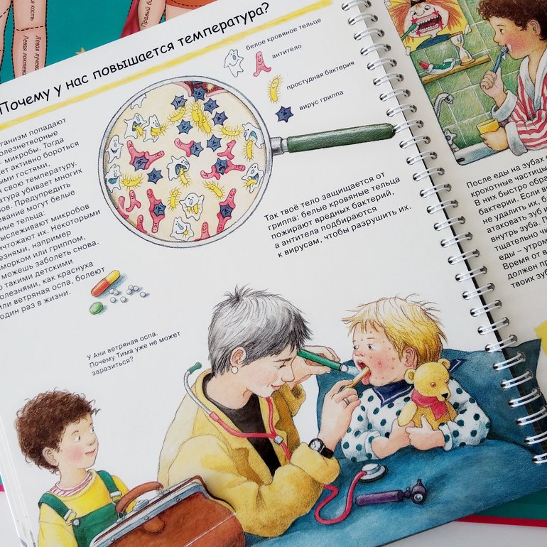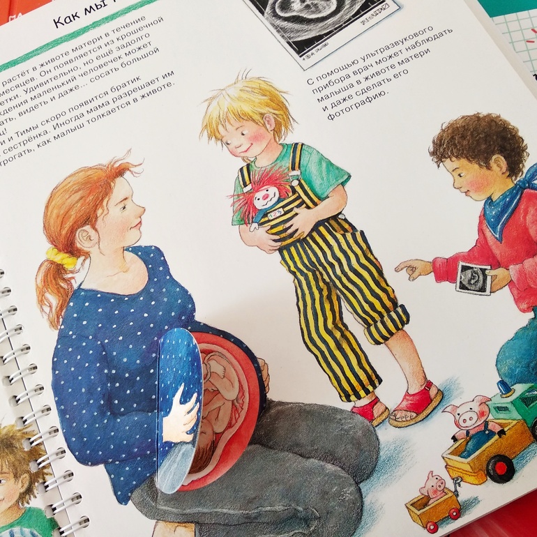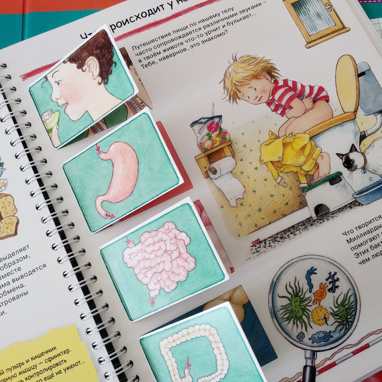 Мы с дочей начали читать эту энциклопедию года в 3, прочитали много-много раз, а потом как-то забыли. И вот сейчас, дочь (5.5 лет) читает эту книжку самостоятельно уже несколько дней. Младший сын (1,5 года) тоже заинтересовался: все рассматривает, под створки заглядывает, изучает части тела).