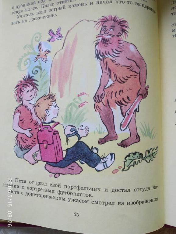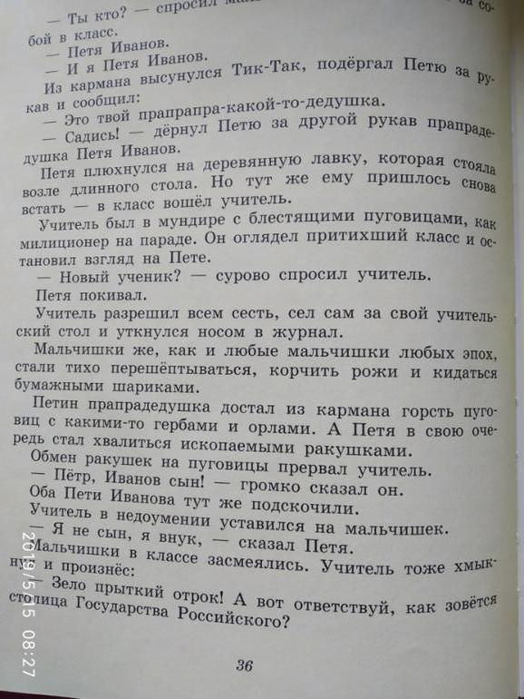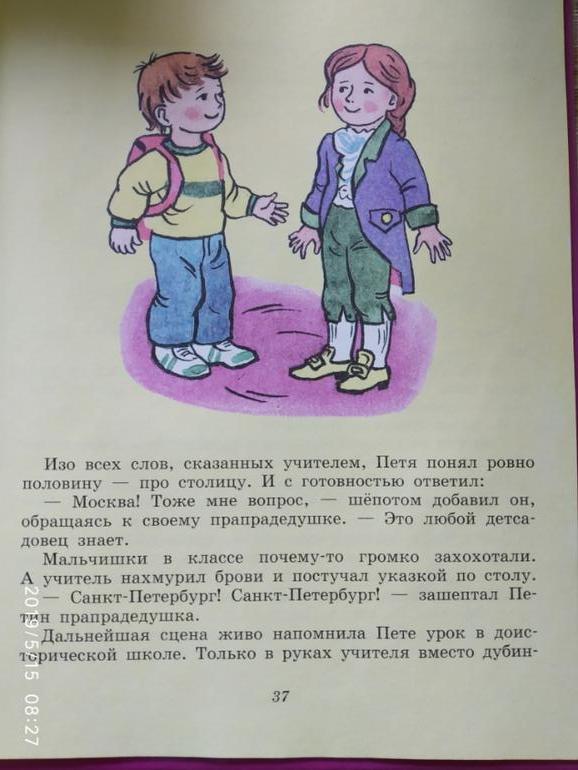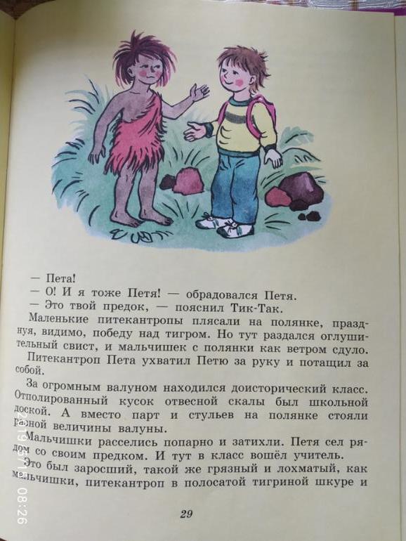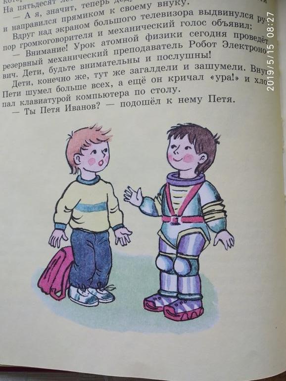 Потом у Пети были и дальнейшие продвижения по ленте истории, попадал и в прошлый век и в будущее, т.е учитывая, что книга написана лет 70 назад, Петя попал в наши дни)), где учителя были уже роботы))