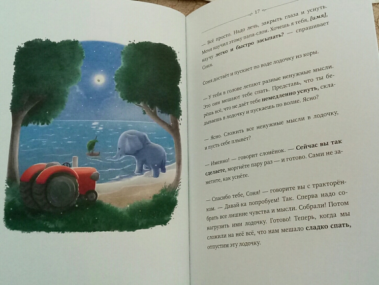 читаю просто как рассказ, без личных обращений, но зевать в нужных местах не забываю) не знаю точно, действует ли на ребенка, меня в сон клонит) А ребенок с удовольствием слушает историю про тракторенка и его друзей)