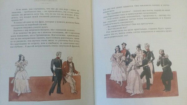 А уж исход дуэли с Грушницким шокировал, просто поверить не могла, что он мог так хладнокровно поступить.. и конечно, удивительно перекликается с судьбой самого Лермонтова..Теперь жду, что скажет после прочтения дочь. Специально для нее купила домой это подарочное от издательства Махаон. Все таки классику легче читать с картинками) Рисунки в книге Анатолия Иткина, и я, увы, в который раз убедилась, что это не мой художник..