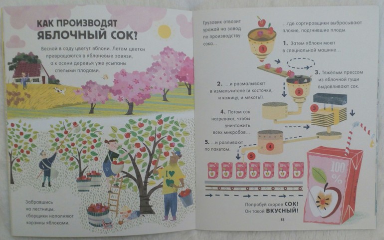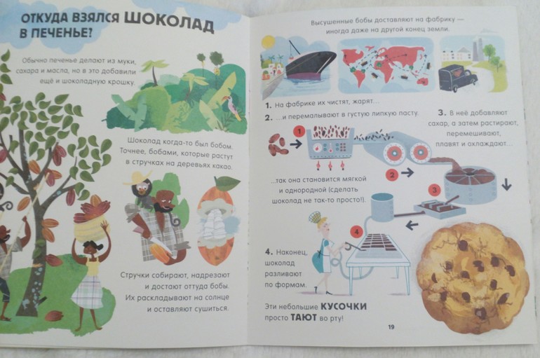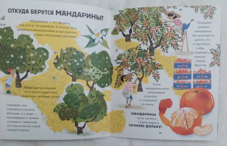 И третья книга про еду) Это книга интересна тем, что показано не только, как растет и где, но и как происходит сбор урожая и транспортировка до магазинов, где, собственно, мы и берем потом еду)