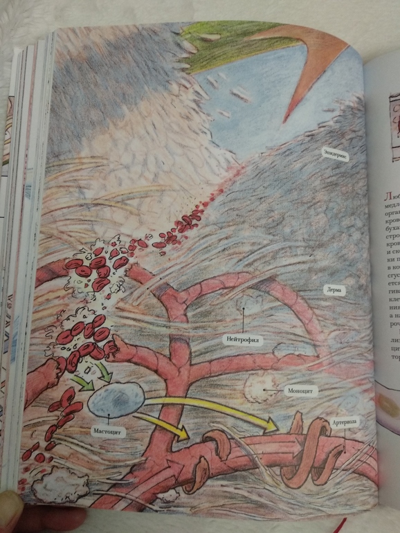 Книга очень необычна, и стилем рисунков, и манерой изложения информации, порой шокирует, немного удивляет, впечатляет , но главное, информирует и просвещает! Здесь не будет анатомически точных рисунков,тут они с юмором, такой непривычный взгляд на внутреннее устройство человека) но за счет этого легче понимается и запоминается.