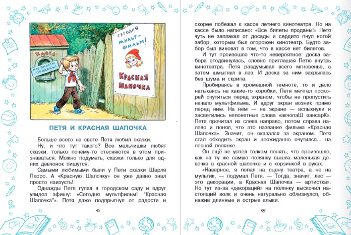 Владимир Григорьевич Сутеев сочинял не только сказки для малышей, он ещё придумывал поучительные истории для школьников. В книгу «Петя Иванов и волшебник Тик-Так» вошли сказки «Мы ищем Кляксу» и «Петя и Красная Шапочка» и сказочные повести «Волшебный магазин» и «Петя Иванов и волшебник Тик-Так». Сказочные герои оказываются в удивительных обстоятельствах! Петя шёл в кино, а попал в сказку. Теперь от него зависит, съест Волк Красную Шапочку или останется голодным.
