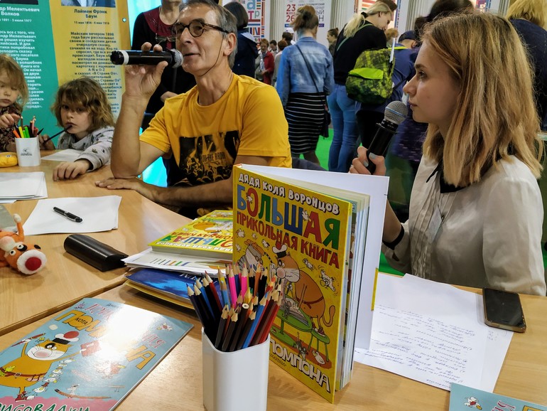 А рядом находился стенд "Тримага". Я очень хотела, чтобы издательство в этом году порадовало своим присутствием на выставке (в прошлом их не было). Опять же, порадовало! Книги хорошие, цены хорошие. Сбылась мечта идиота - архив "Весёлых картинок" теперь дома. Кладезь стихов, сказок, карикатур и других картинок в одной большой книге! Девушка, продававшая книги, сказала, что этого архива осталось мало. Я забыла спросить, на выставке или в общем. Так что если тоже хочется том себе, то лучше не откладывать в слишком долгий ящик.