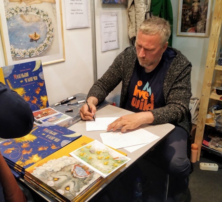 В тот момент А.Рейпольский и Е.Мельникова подписывали книги для всех желающих.