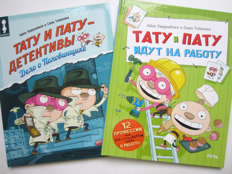 На этом коллаже верхний ряд и левый нижний чудик на книгах "Тату и Пату идут на работу":